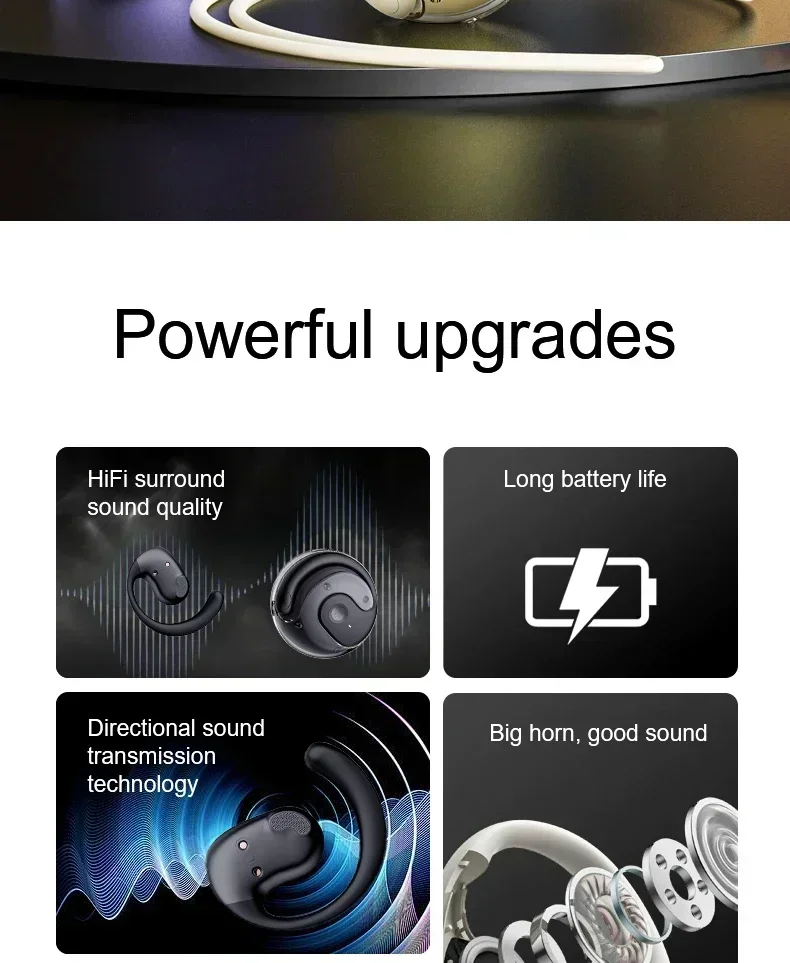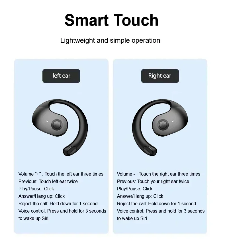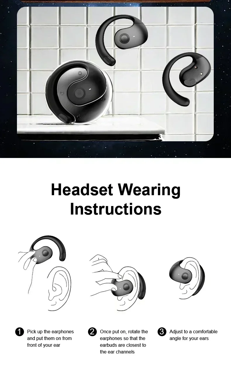 OWS Headphones Bone Conduction Earphone Open Ear Sports Bluetooth Headphones Wireless Earbuds With Noise Cancellation