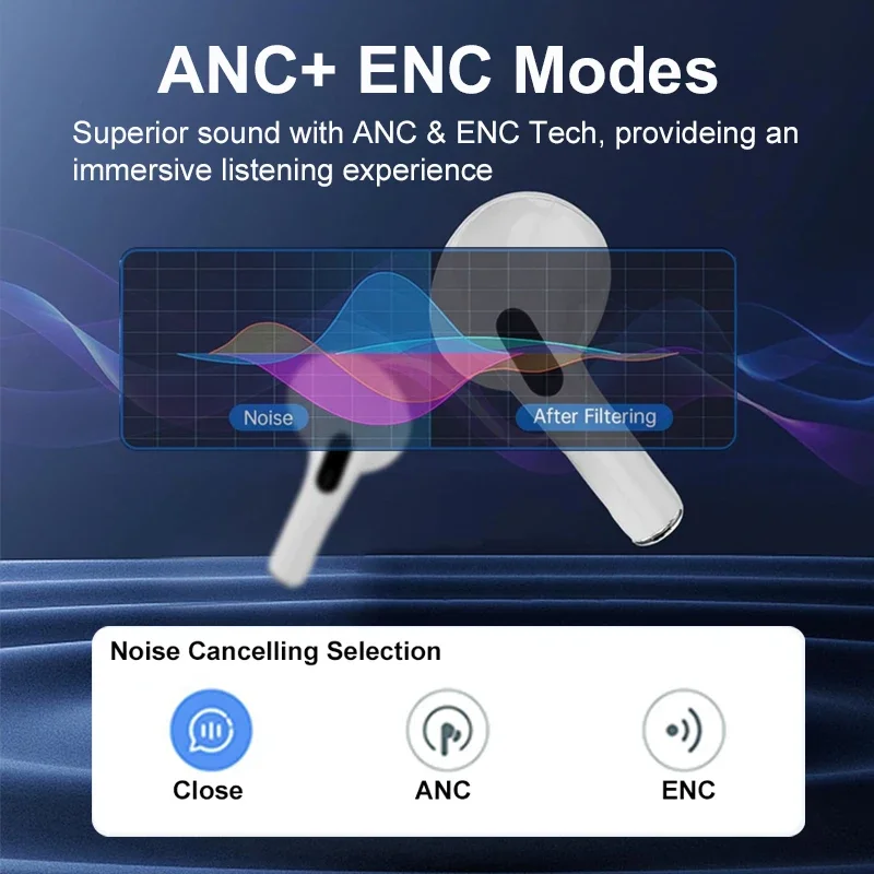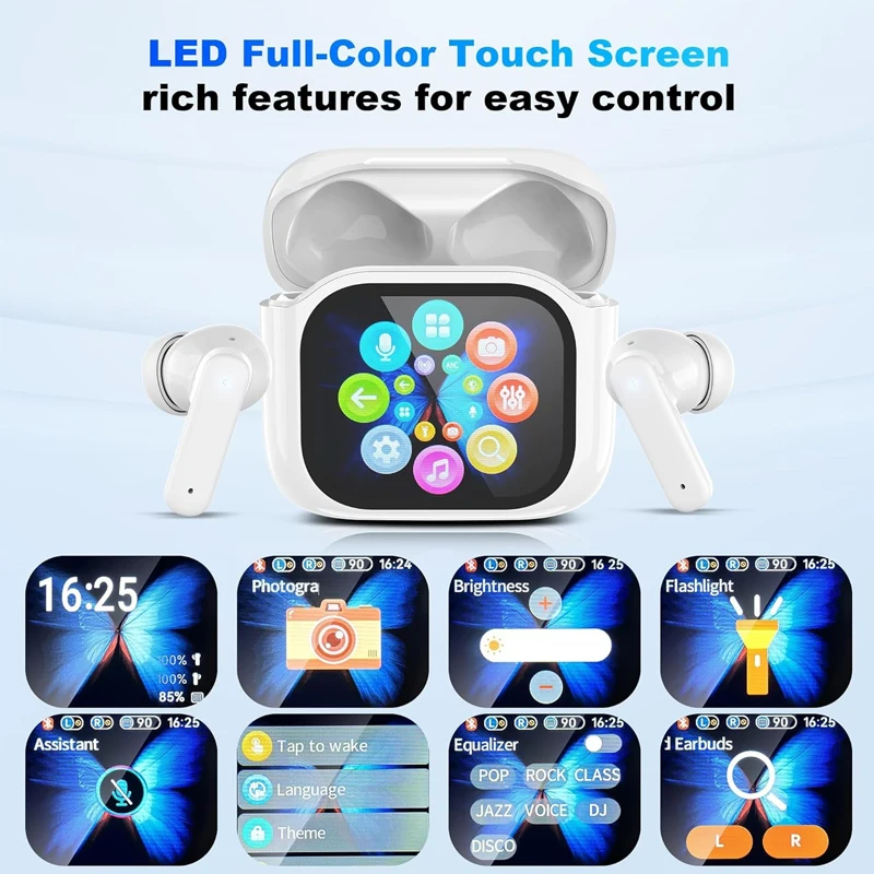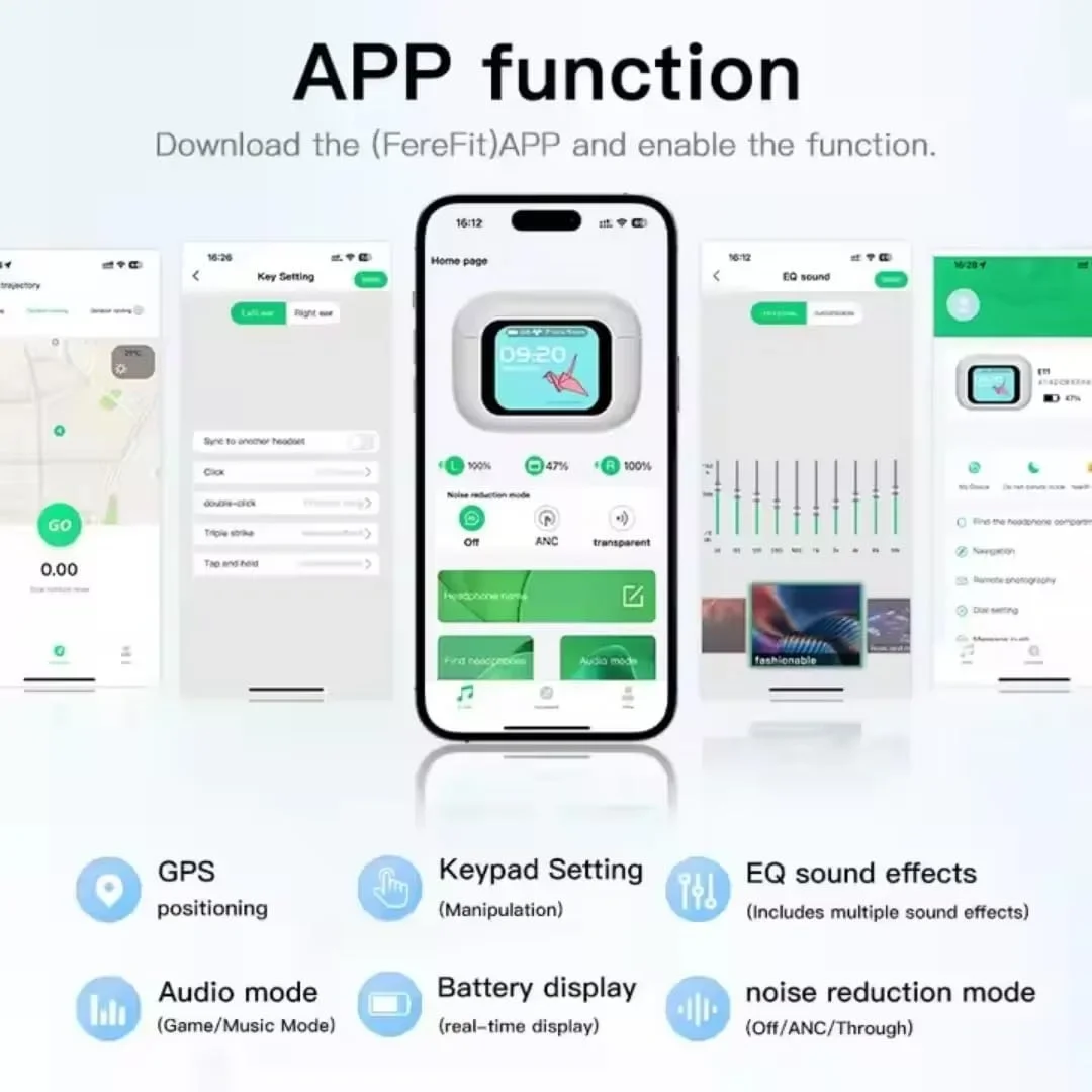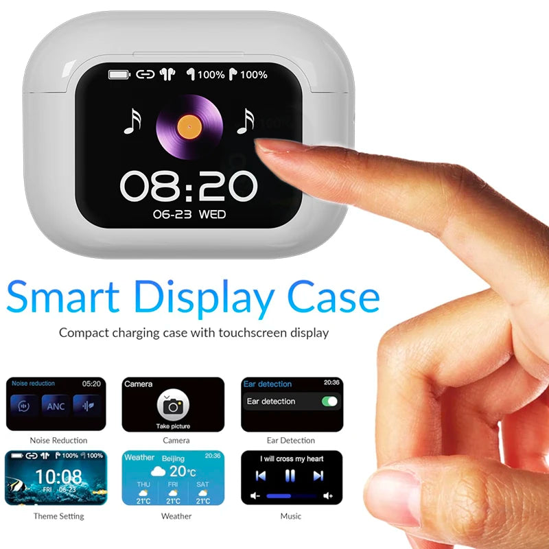UYUXIO ANC ENC Earbuds with LCD Screen Noise Cancelling Wireless Earphone High Sound Quality Headphone Ear Buds Touch Headset